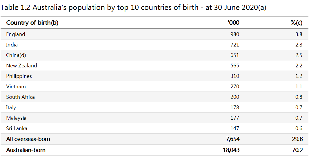 澳洲近三成常住人口出生于海外,中國移民位列第三!
