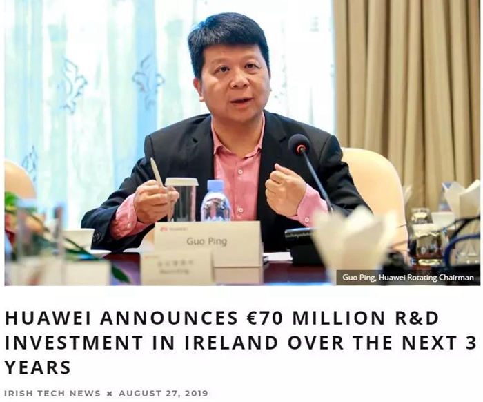 8月底,華為宣布將在未來三年向愛爾蘭研發部門投資7000萬歐元,以支持其在愛爾蘭不斷增長的業務。
