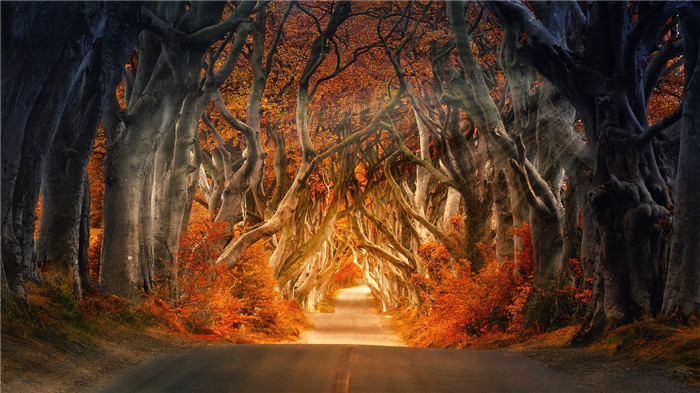 北愛爾蘭地區阿莫伊村附近有一條被譽為世界上最美樹木隧道的地方。路邊的毛櫸樹層層疊疊地排列著,形成一道樹蔭濃密、寧靜怡人的鄉村風光。300多年的歷史為這條道路抹上了濃郁的歷史氣息。這就是權游中連接北境長城、君臨、風息堡的重要交通樞紐——國王大道。