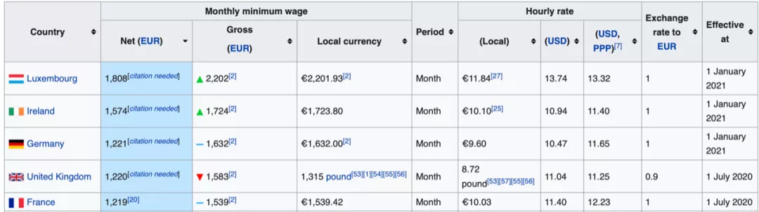 根據(jù)Eurofound2021年最新數(shù)據(jù),愛爾蘭的最低工資水平是歐盟第二高的,為每月1724歐元(折合人民幣約1.3萬元)。