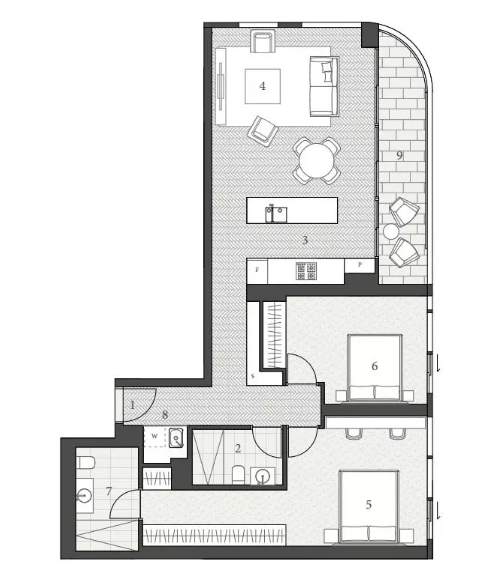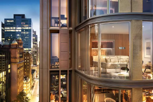 公寓的外觀由國(guó)際著名的澳大利亞建筑公司FJMT操刀設(shè)計(jì),室內(nèi)設(shè)計(jì)由FJMT Interiors負(fù)責(zé)。采用奢華代表的家電品牌Gaggenau以及Fisher & Paykel。