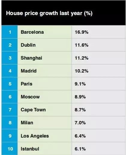 其中西班牙的兩大熱門城市,巴塞羅那和馬德里分別以16.9%和10.2%的漲幅排名首位和第四位。