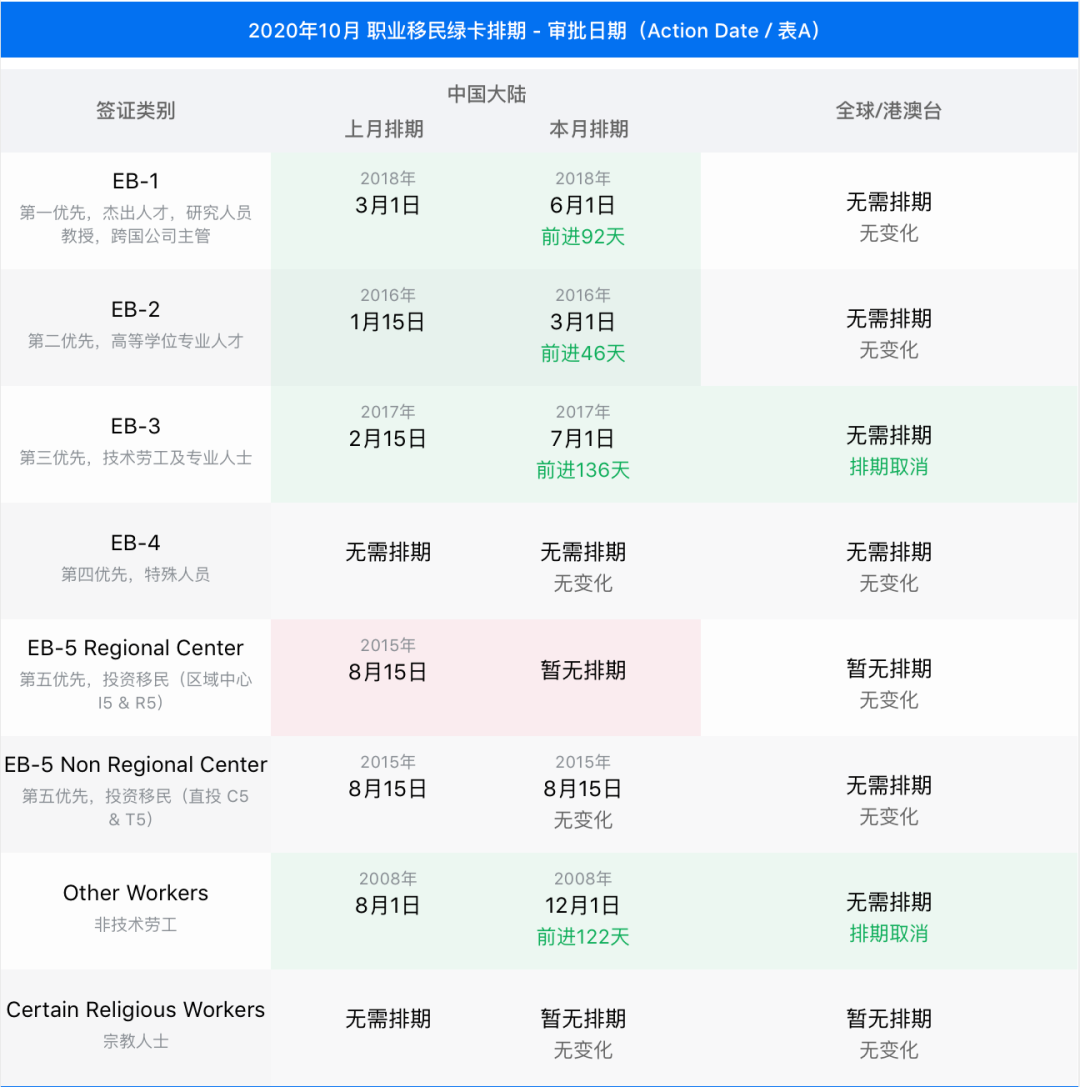 9月24日,美國國務(wù)院簽證辦公室,公布了2020年10月,也就是2021財年第一個月的簽證公告牌。