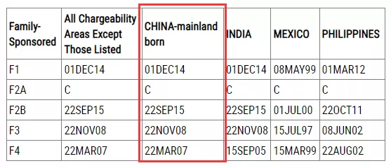 ·親屬移民排期表A,F(xiàn)2A類別無需排期,其它類別均原地踏步;