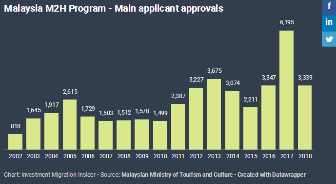 近日,馬來西亞旅游和文化部在其官網(wǎng)發(fā)布了第二家園簽證發(fā)放數(shù)據(jù)。